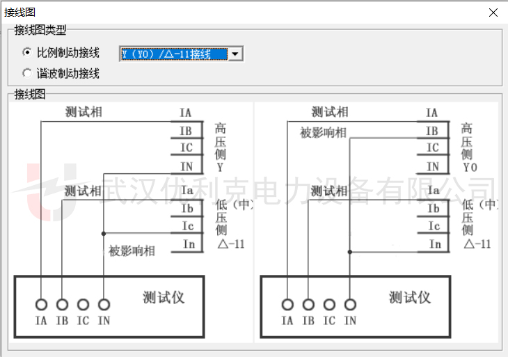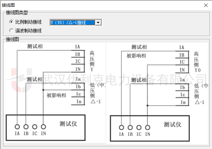 低壓側(cè)(△側(cè)):IB接a相,相位設(shè)為180°(反向)以匹配Y/△轉(zhuǎn)換的相位差。